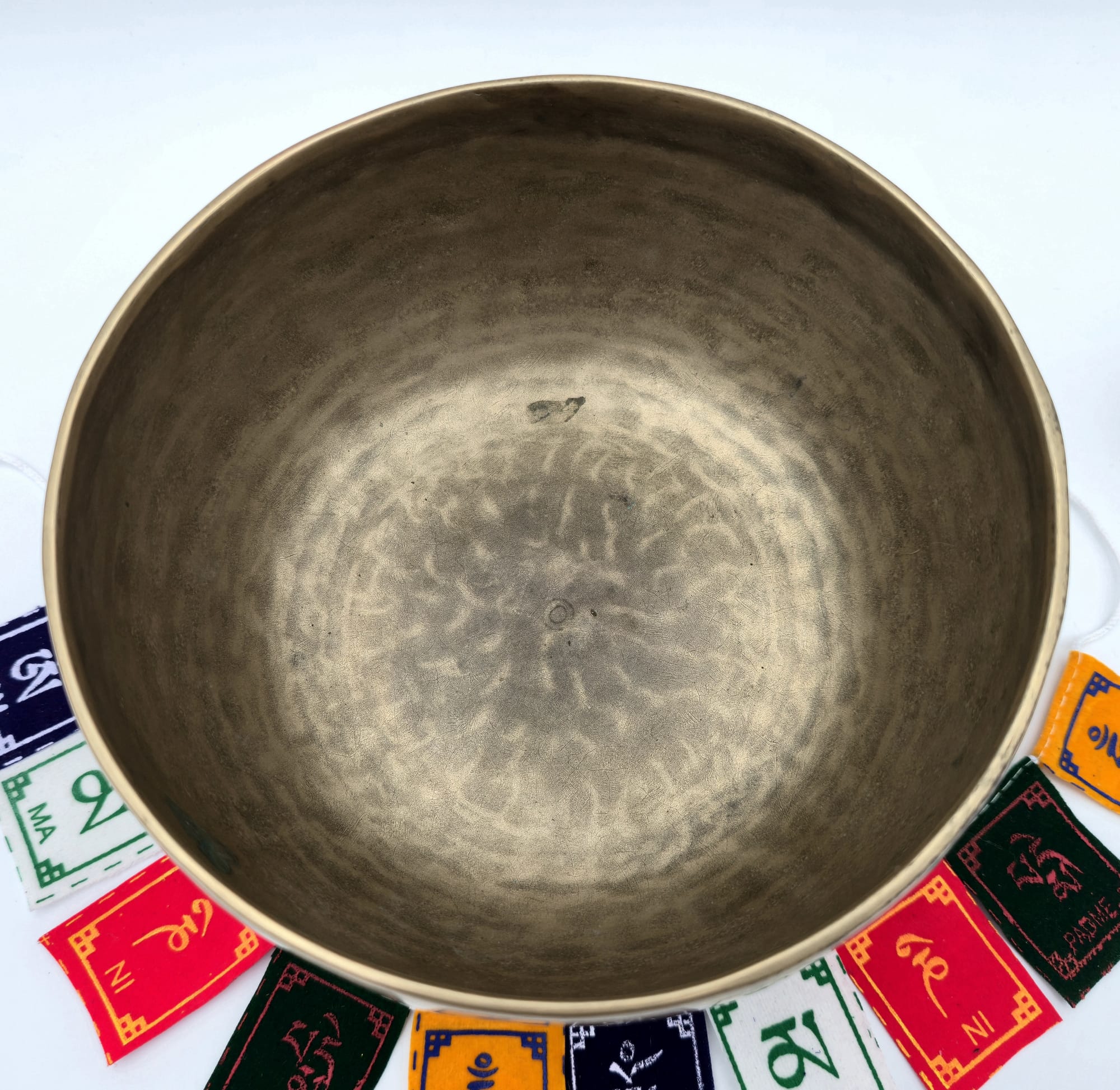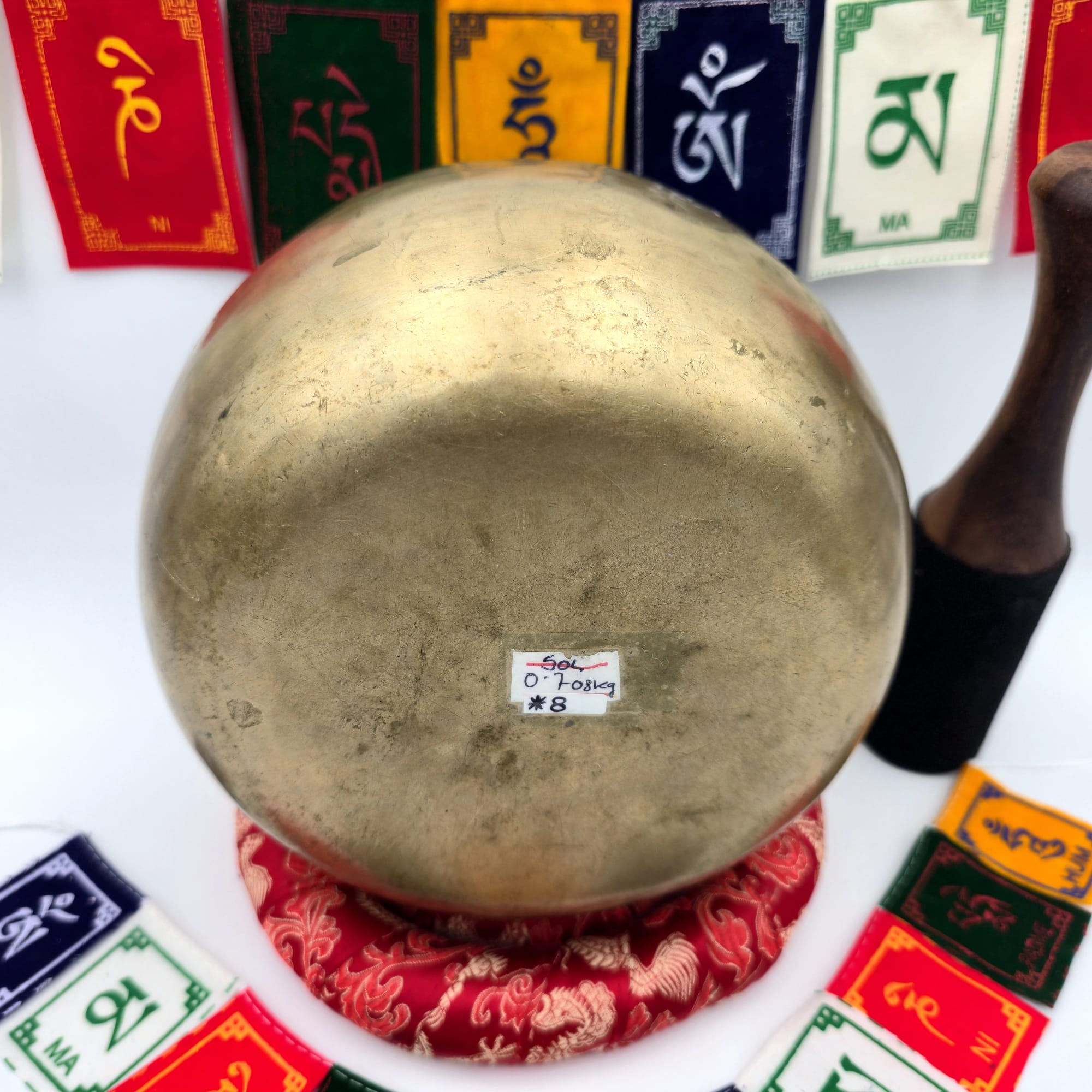 Bol chantant tibétain antique en 7 métaux de 708 g, offrant une tonalité en Sol avec une présence immédiate à la frappe.