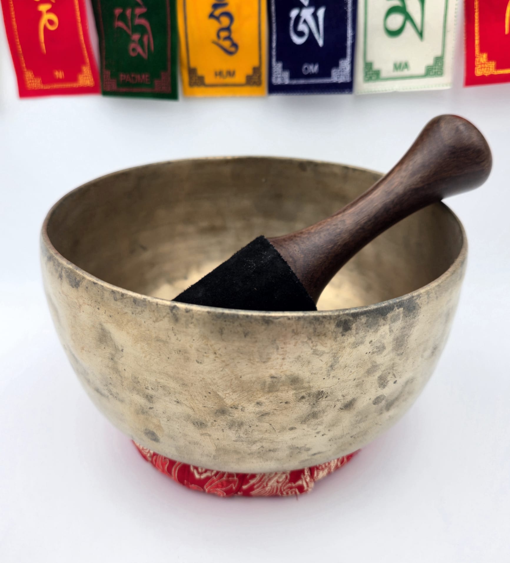 Un bol ancien se reconnaît notamment à sa patine, à une paroi souvent plus fine et à la richesse harmonique de sa vibration, avec une sonorité posée et bien tenue dans le temps.