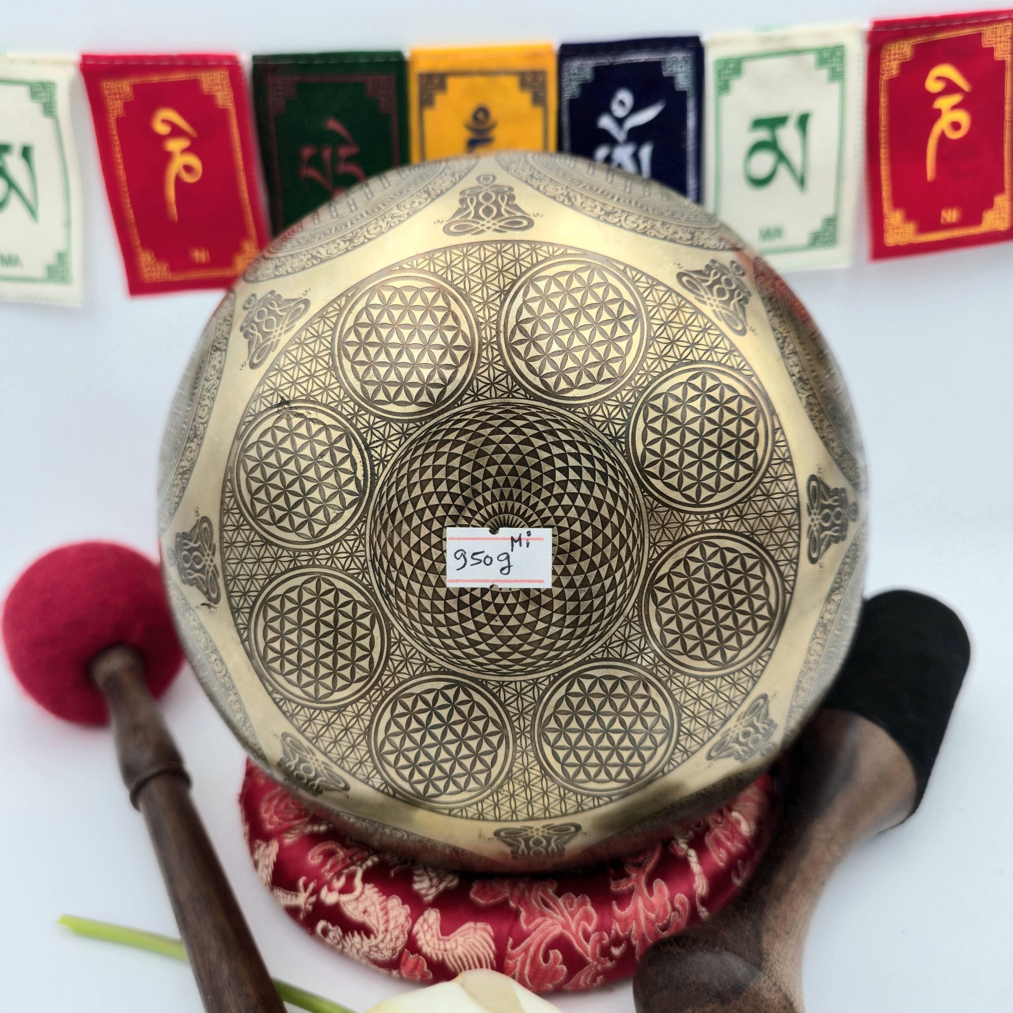 Ce bol chantant tibétain gravé 7 métaux de 950 g en tonalité de Mi offre une belle présence sonore, avec une vibration stable et bien installée dès les premiers instants.