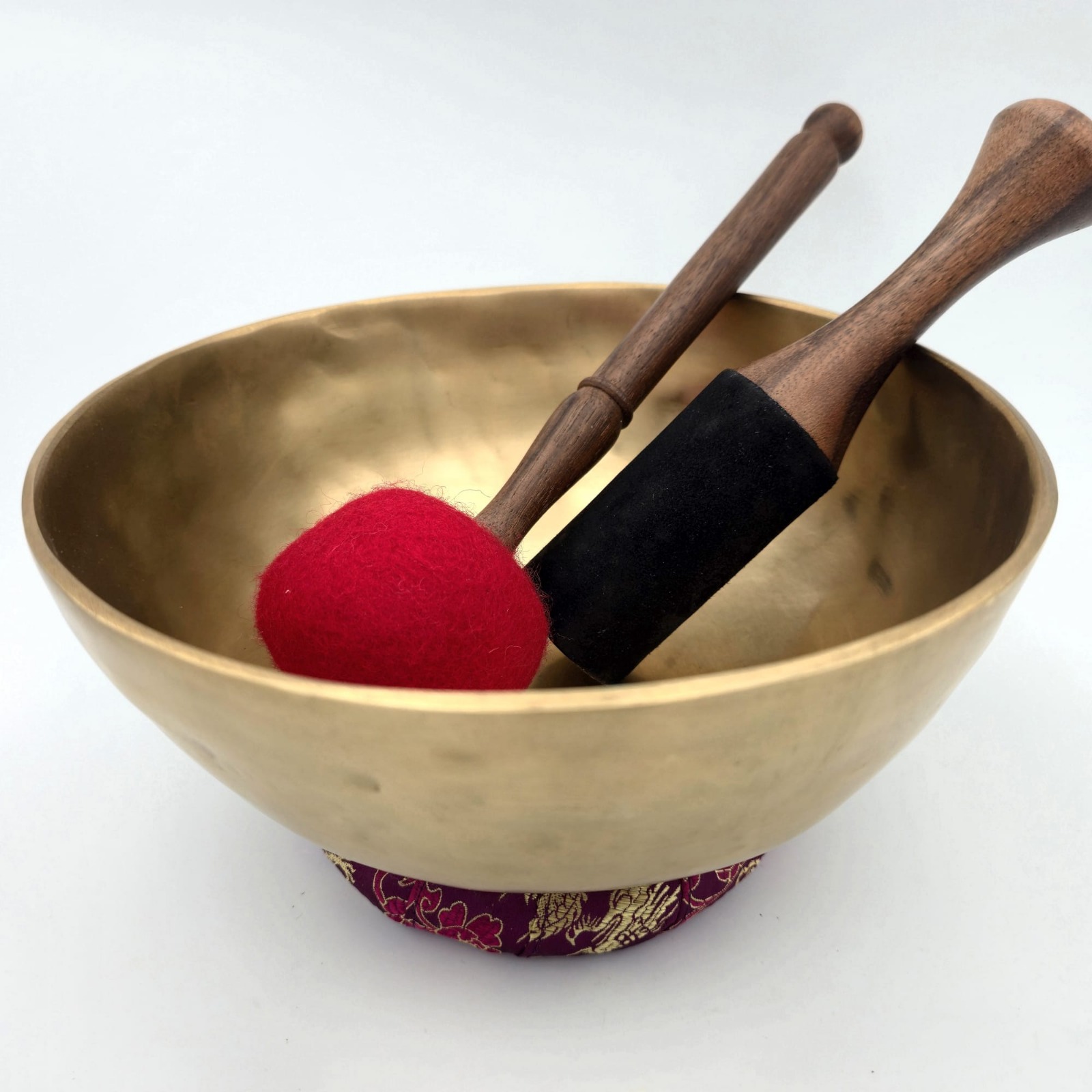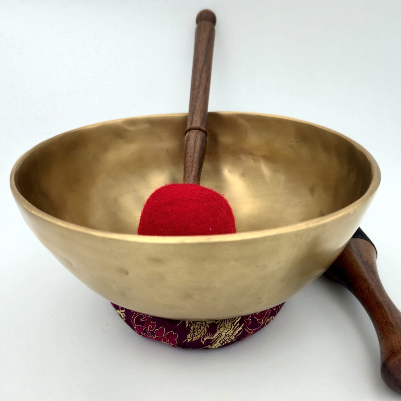 Un bol tibétain brut développe un son très présent et une vibration longue et enveloppante.