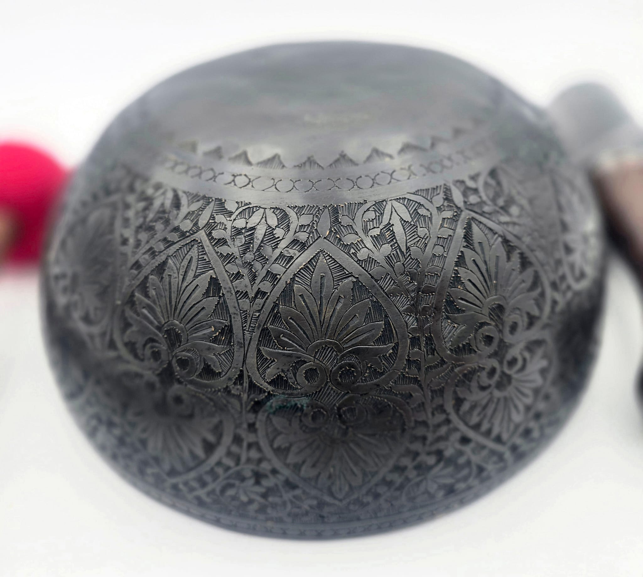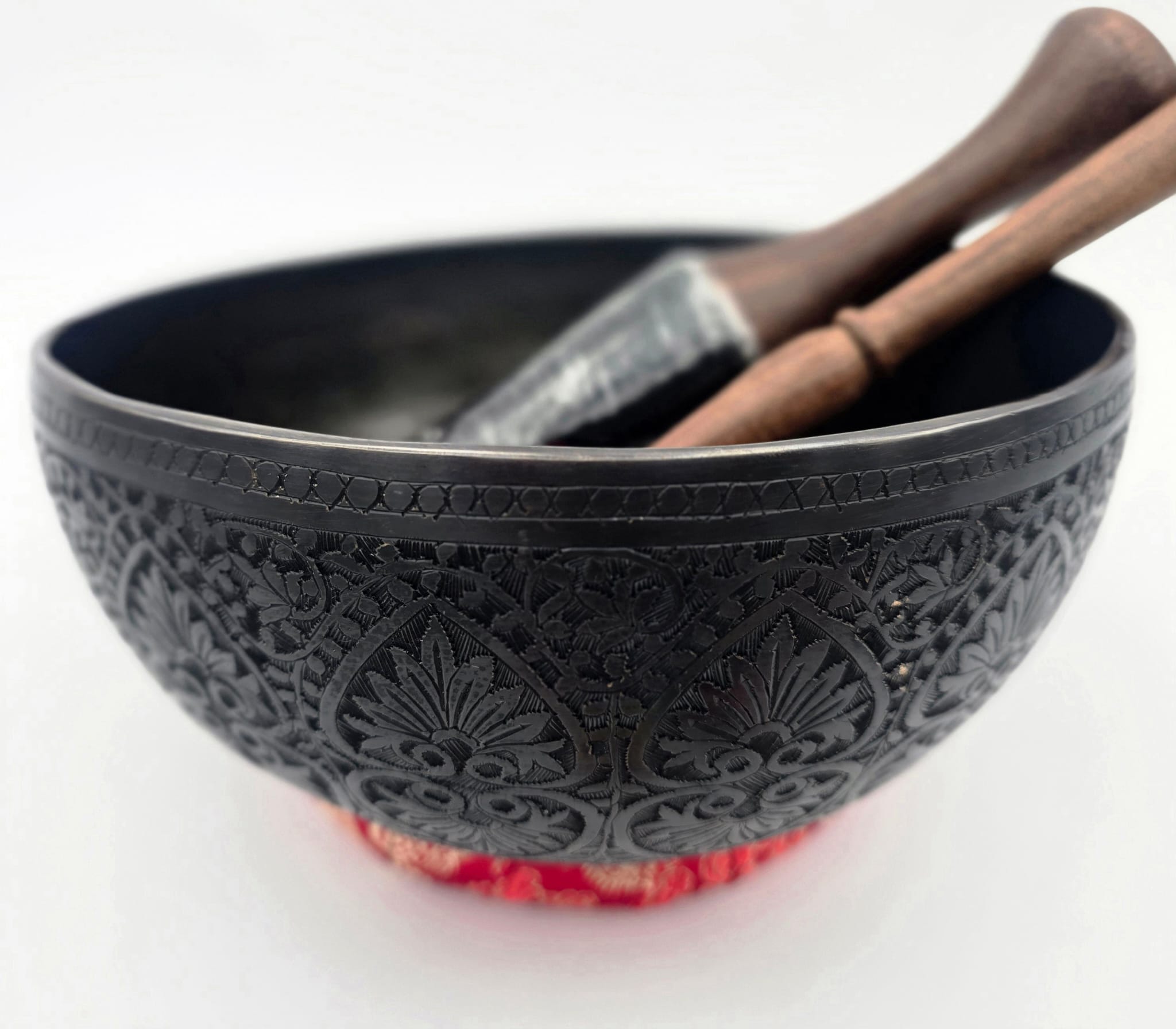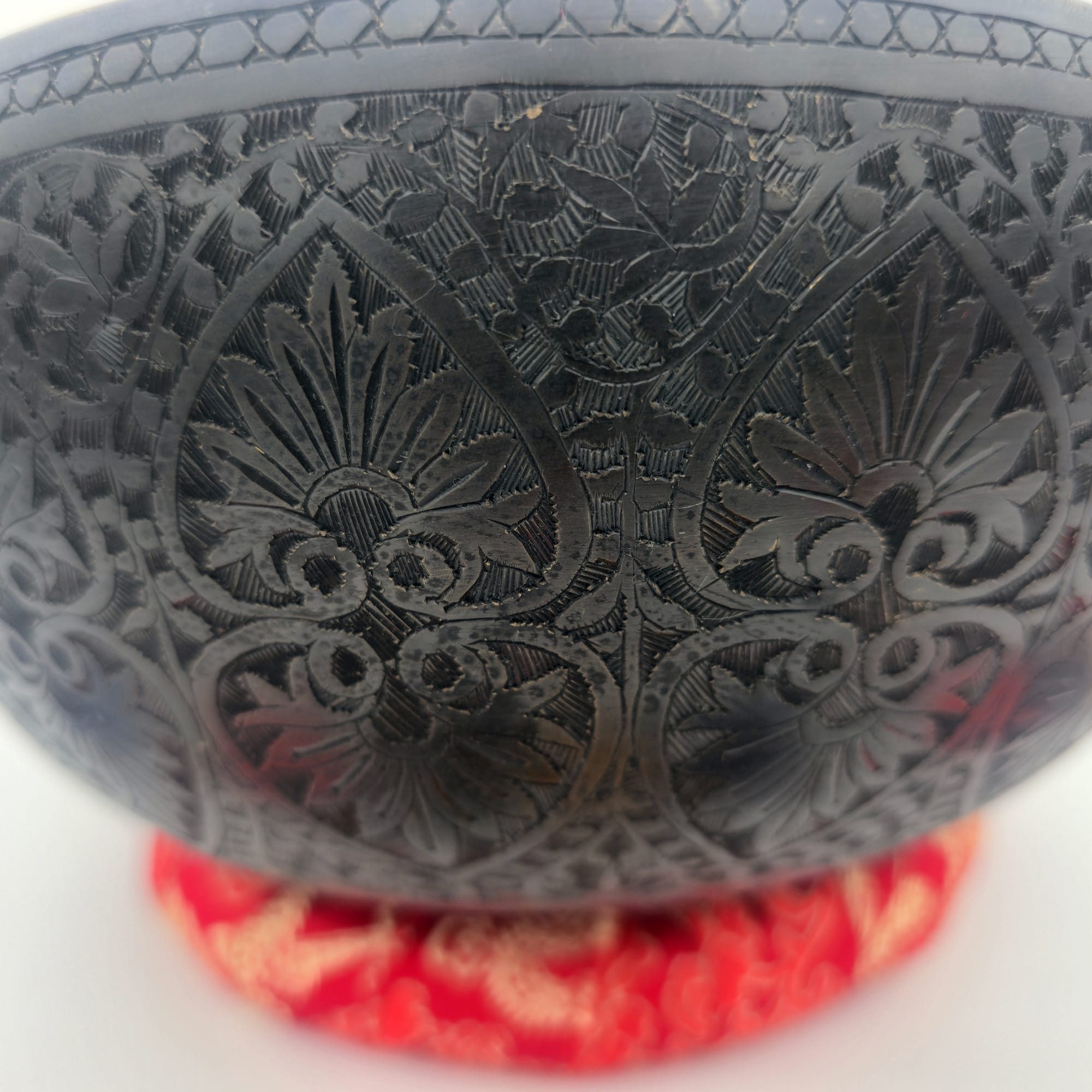 Bol chantant tibétain noir ciselé en 7 métaux, accordé en Mi bémol,