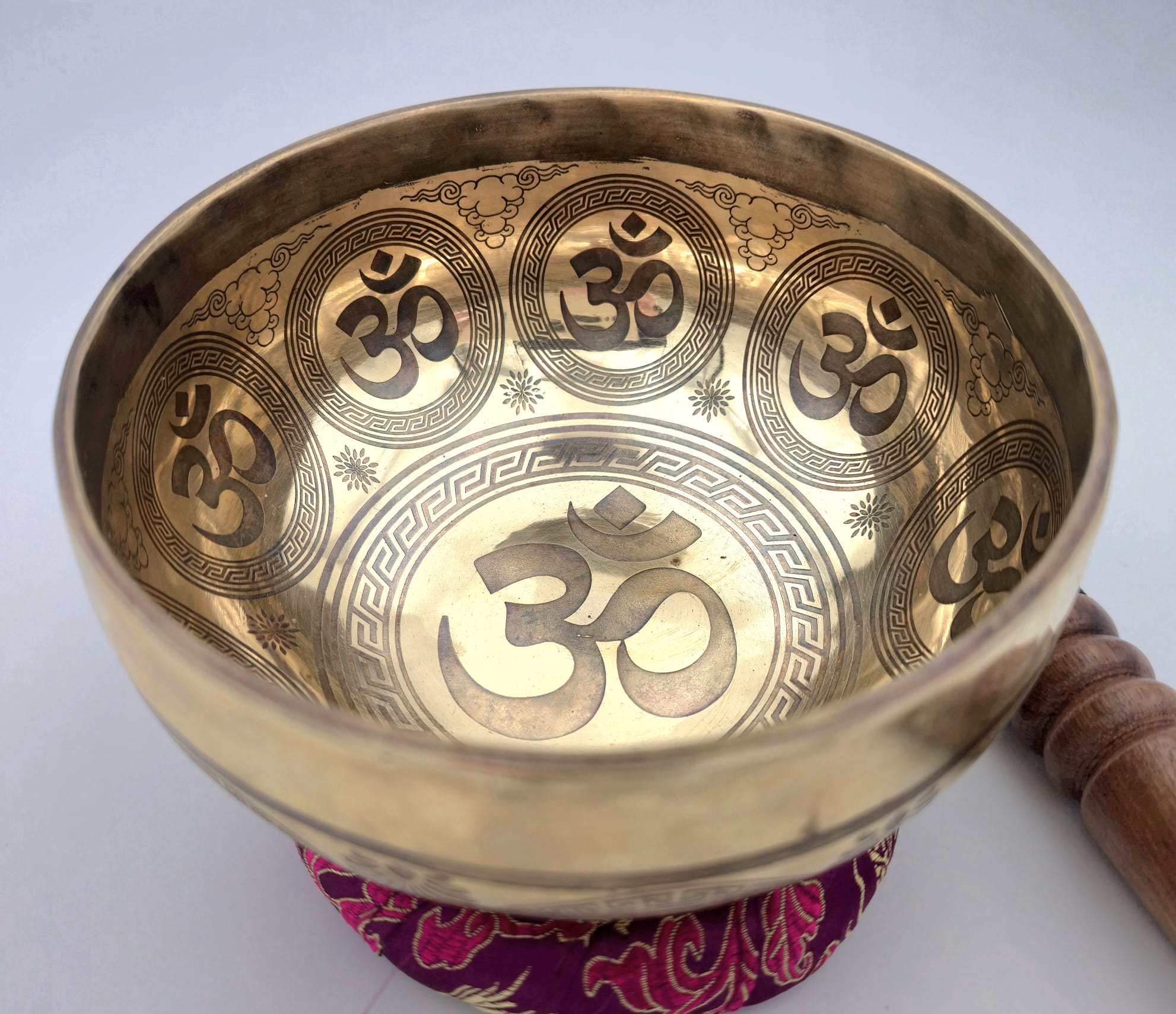 Bol tibétain gravé OM – 7 métaux – Fa – 14 cm – 610 g